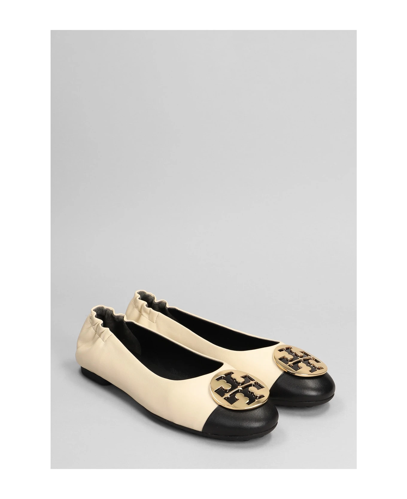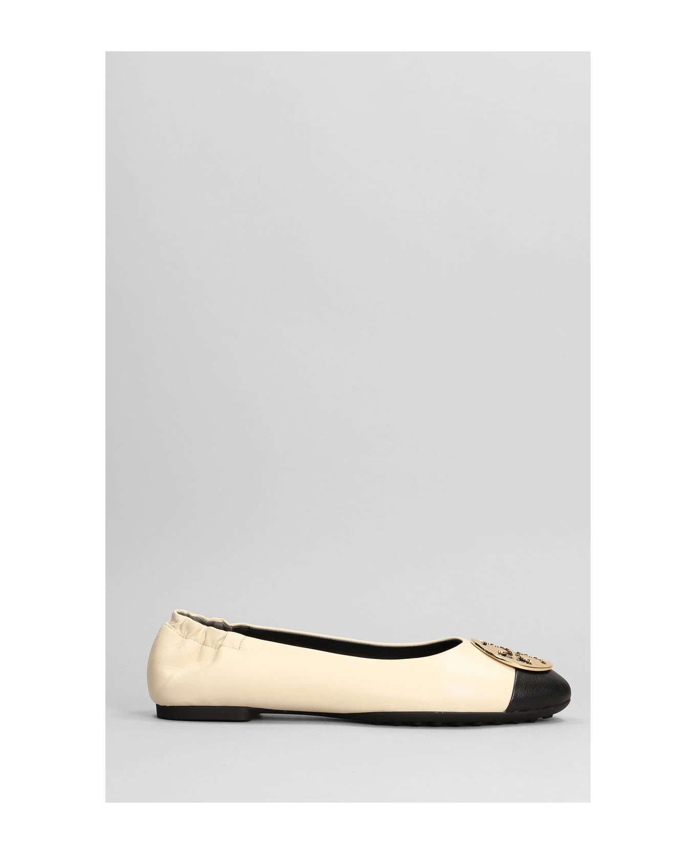 Ballet flats in beige leather, bicolor, logo buckle, 100% leather, Made in Vietnam