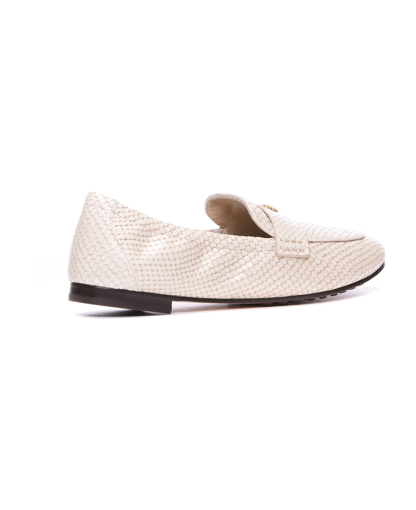 Tory Burch ivory Ballet loafers, elastic closure, leather upper, frontal mini golden logo
