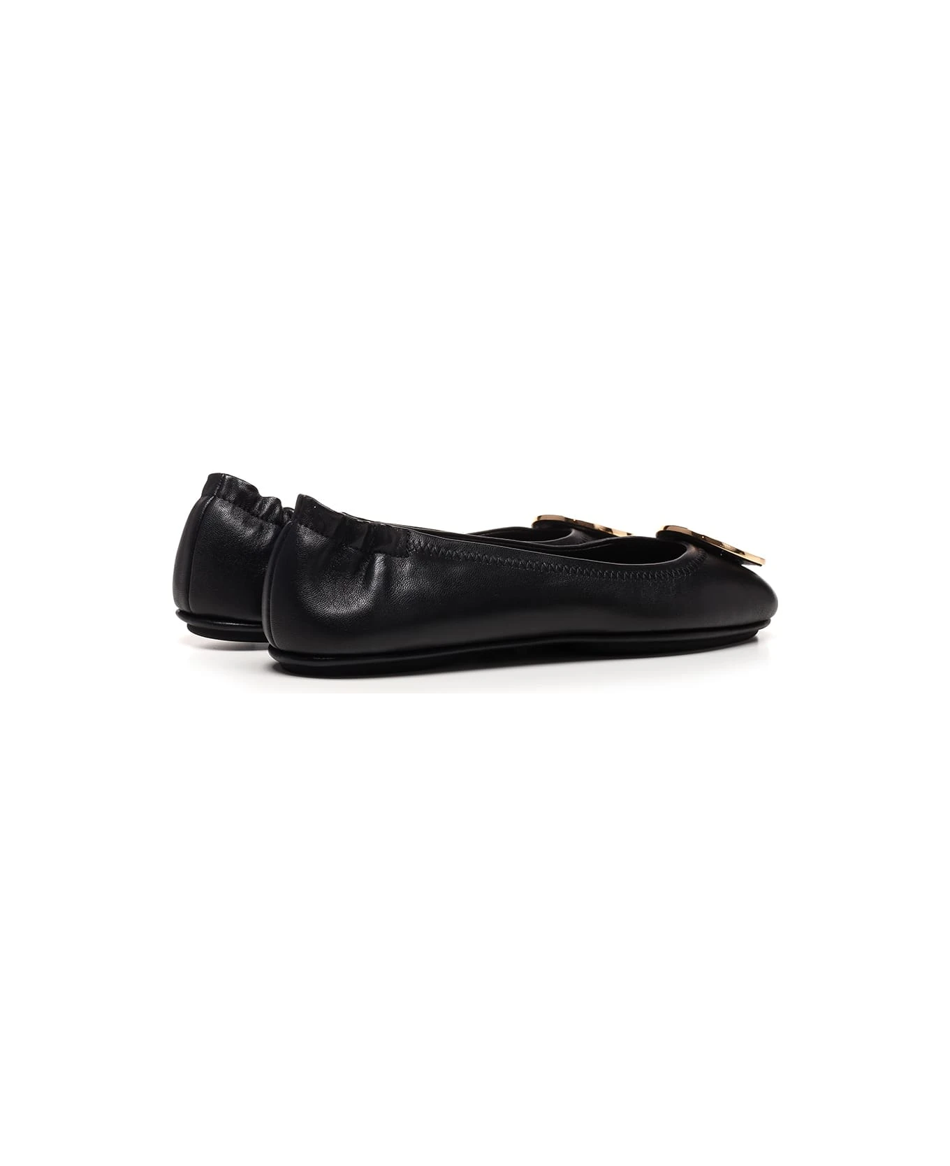 “Minnie” ballet flat from Tory Burch in black leather with metal double “T'” hardware at toe