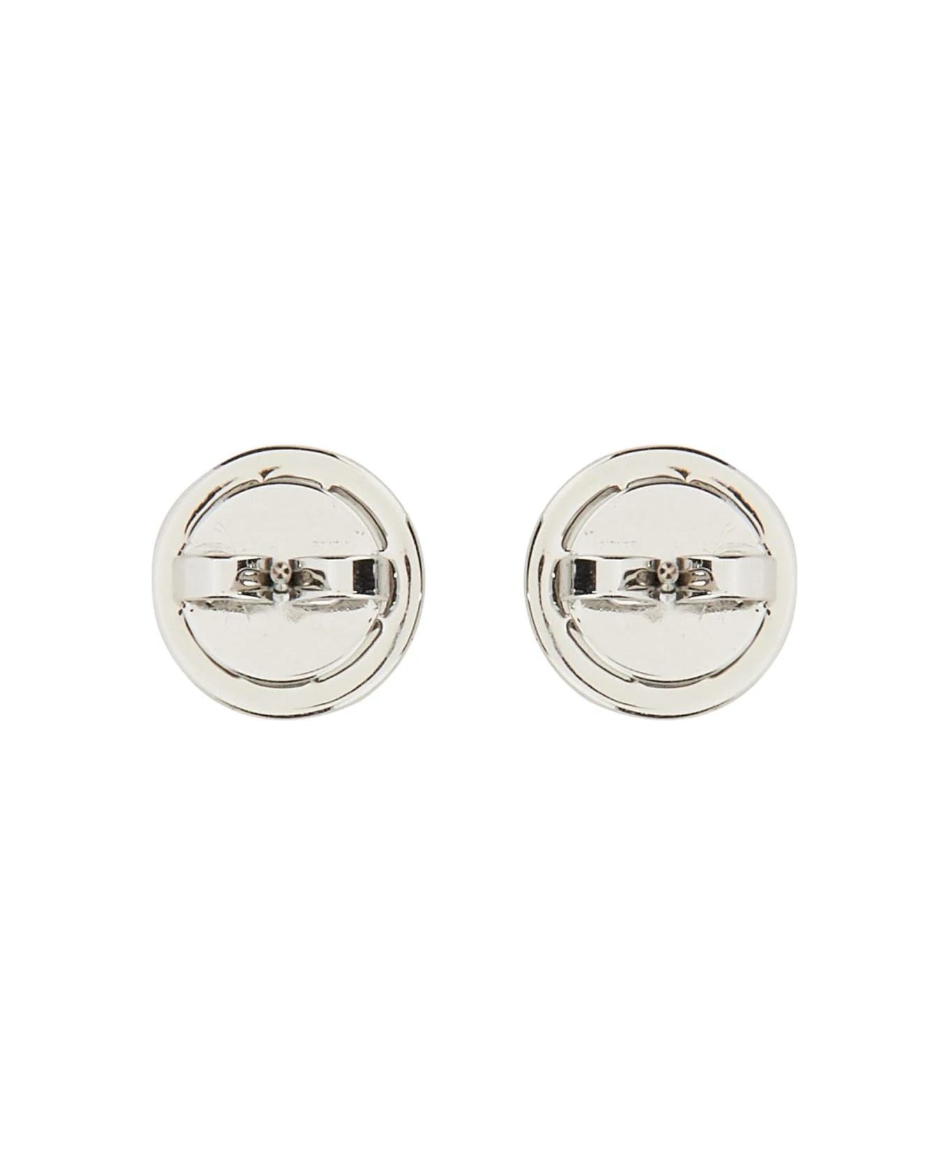 – Interlocking Back Closure- Spherical Stud With Logo Icon And Crystals- 80% Brass, 10% Swarovski, 10% Titanium
