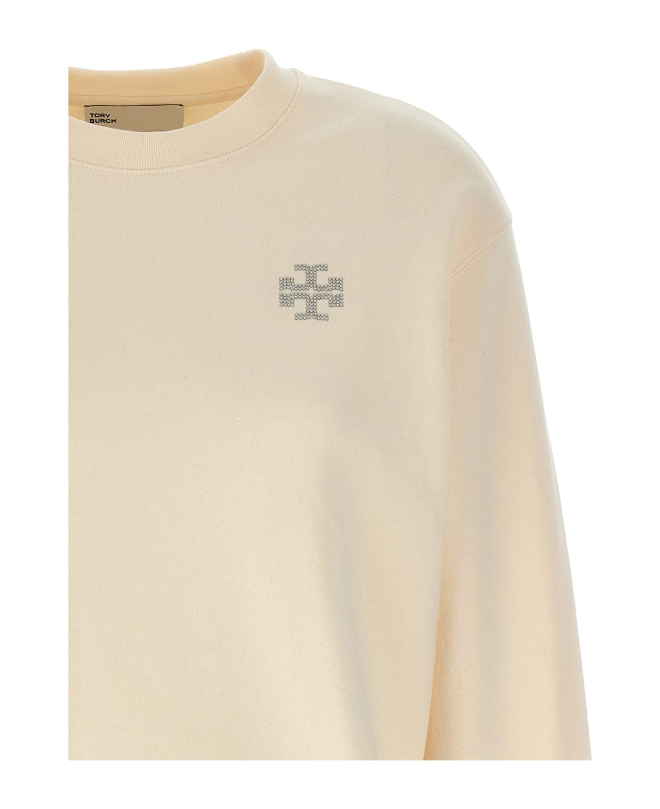 ‘Hot Fix Logo’ cotton sweatshirt with front rhinestone logo, crew neck, long cuffed sleeves.