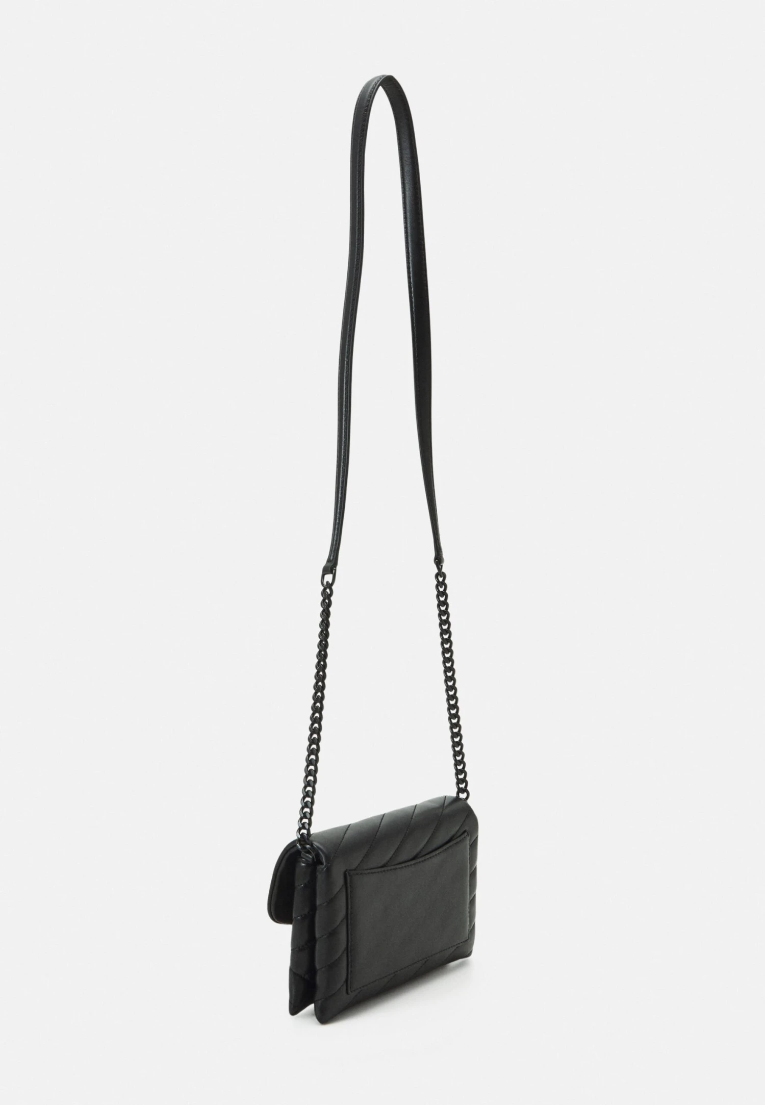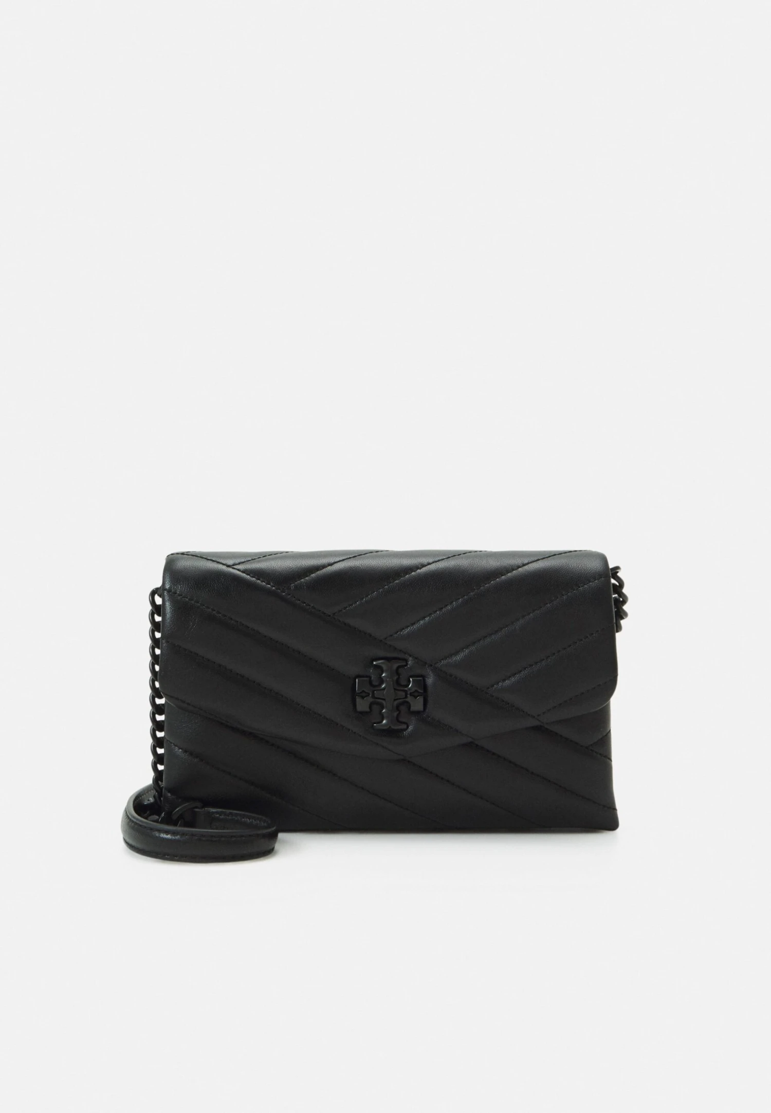 Tory Burch Kira Chevron Powder Coated Chain Wallet – Across Body Bag – Black