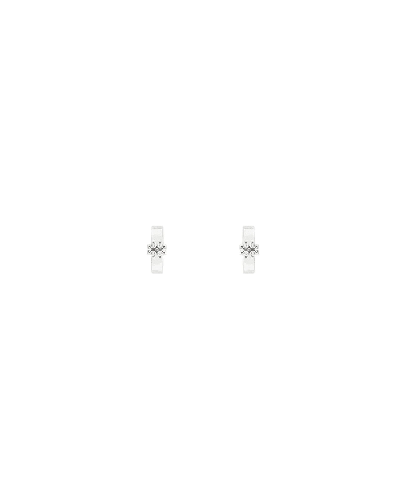 Tory Burch “Kira” huggie earrings crafted in 18-karat gold-plated brass with Double T detail. Latch closure. For pierced ears.