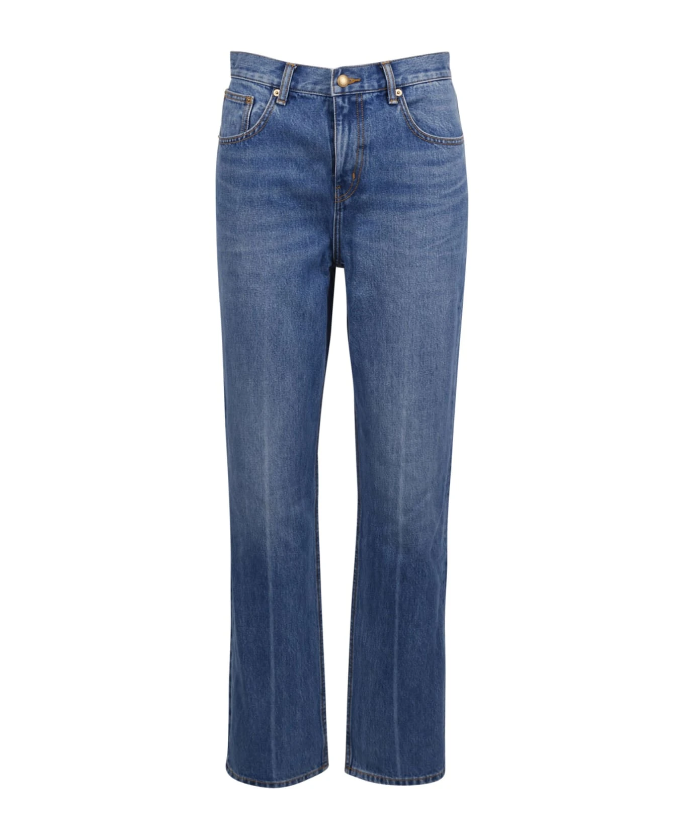 Mid-rise straigh-leg jeans from TORY BURCHWashed-effetc jeans. Mid-rise. Front button and zip fastening. Belt loops. Classic five pockets. Straight leg. 100% Cotton. Made in China.