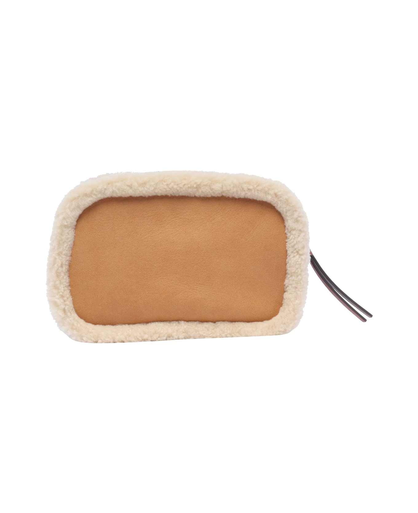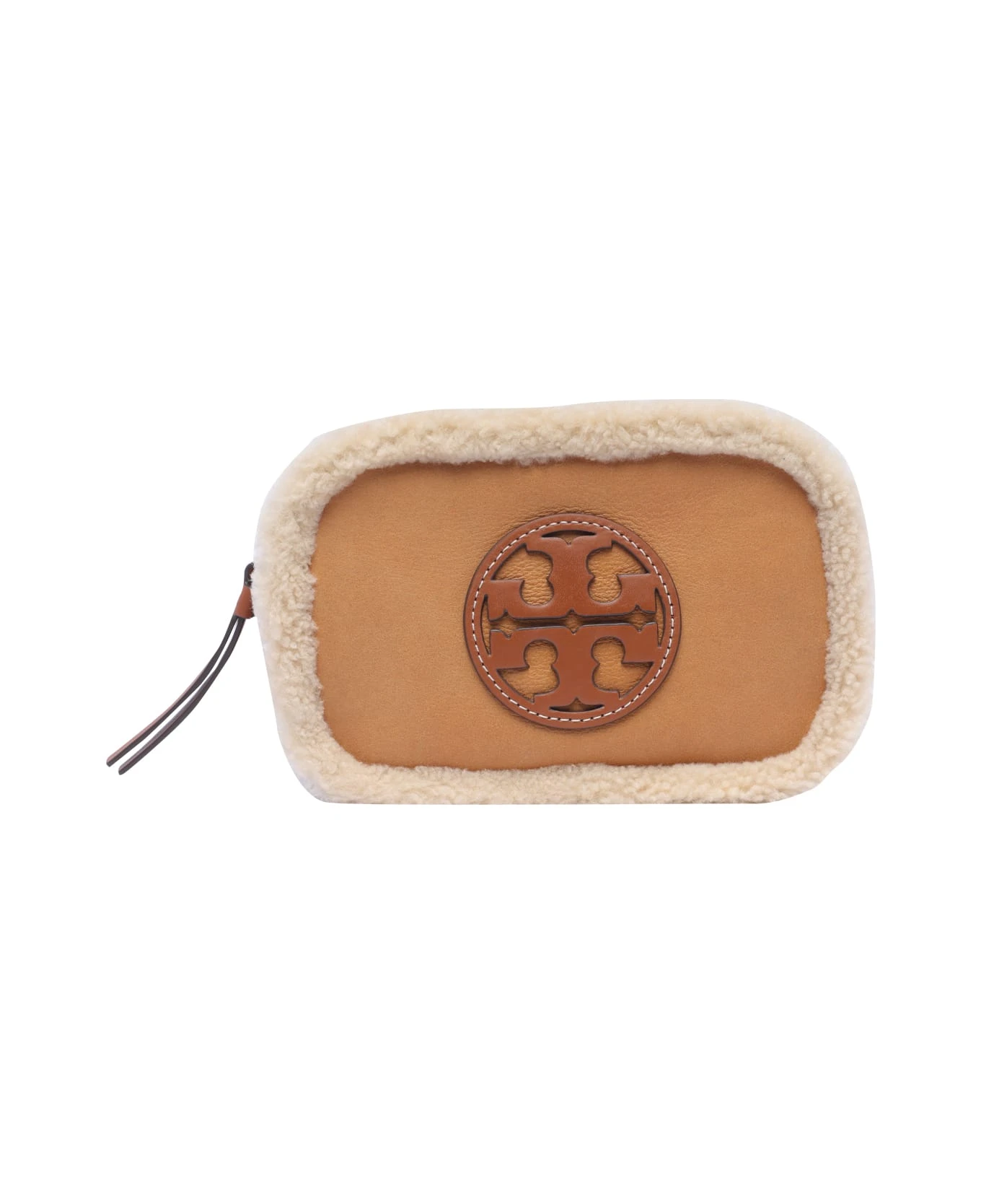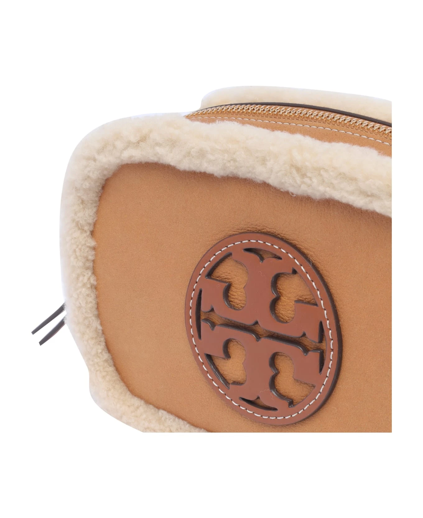 Tory Burch beige Mini Miller Shearling crossbody bag, zip closure, adaptable and removable strap, frontal logo