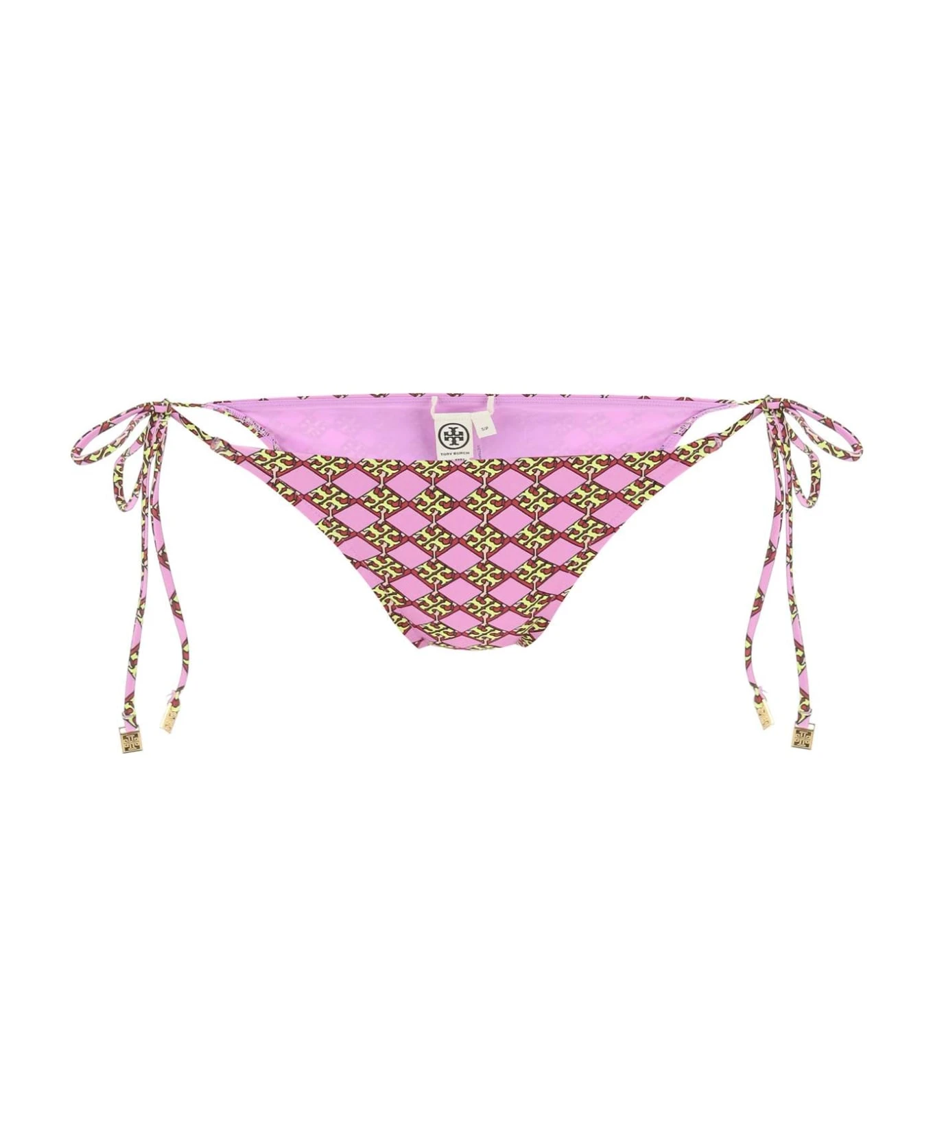 Tory Burch regular bikini bottom in seasonal-printed lycra, with side straps.